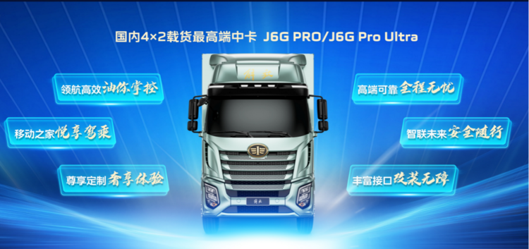 “双喜临门”之际,解放再出“王炸”:J6神车系列的J6G Pro及J6G Pro UItra正式发布。作为国内4×2载货中卡市场的“登峰之作”,J6G Pro直击用户“痛点”,重新定义中型载货车标杆。以“超级动力、全新造型、智联随行、场景定制”满足用户对于车辆经济动力、可靠性、舒适性、定制化与改装方便性等多元需求。这不仅是一汽解放对市场需求的深度洞察,更是应对行业内卷、为客户创造价值的真实回应。J6G Pro,正以“让赚钱更高效、让驾驶更舒适、让车辆更专业、让路途更安全”的造车理念,为万千卡友打造从从容容、游刃有余的运输新体验。