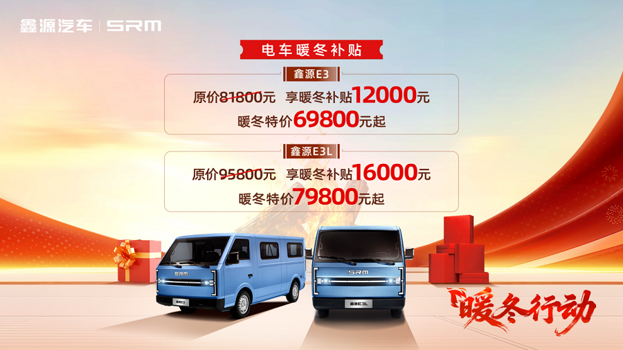 E3系列车型作为鑫源高性价比新能源产品,得到了市场销量与用户口碑的双重认可,也是助力用户事业发展、推动绿色物流转型的重要装备。鑫源双十一将其作为“暖冬行动”补贴重点车型,以切实行动降低用户购车门槛:鑫源E3暖冬补贴12000元,特价仅需6.98万元起;鑫源 E3L 释放 16000 元暖冬补贴, 7.98 万元起把车开回家,入手门槛再创新低,轻松驾驭创富路。