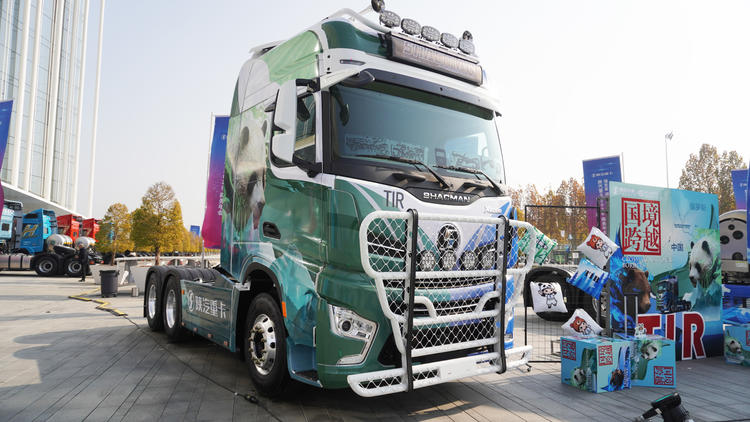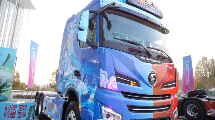 比如这台一面是熊猫一面是西伯利亚熊的X6000菁英版,是陕汽专为跨境运输打造,全球定位、寒区配置(保温驾驶室、发动机进气加热、铁质油底壳、4kW风暖独立暖风、9kW发动机水暖等),跨境运输路上不惧气温环境变化,一路通畅。
