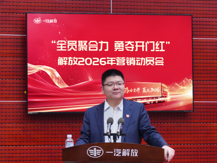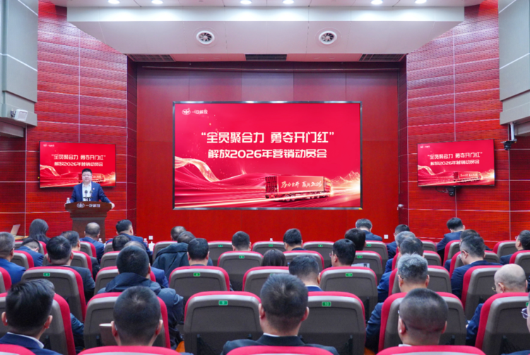 1月4日,2026年的首个工作日,一汽解放召开“全员聚合力 勇夺开门红”营销动员会,一汽解放党委领导班子成员出席会议。一汽解放董事长、党委书记李胜,总经理、党委副书记于长信分别作动员讲话。