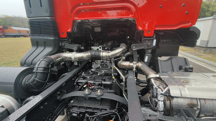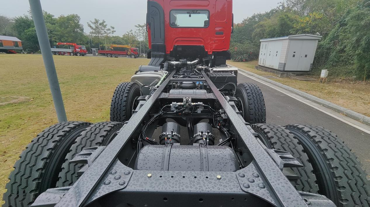 想要跑赢工期,动力必须够劲。乘龙H5 6×2R自卸车搭载玉柴六缸发动机,最大输出300马力,峰值扭矩高达1200N·m,配合法士特10挡变速箱,形成可靠的澎湃动力,起步迅猛、爬坡有劲,从容应对复杂路况,运输效率拉满。其创新的6×2R驱动桥设计,更是它的省油杀手锏,空载或轻载时升起中间桥,降低行驶阻力和轮胎磨损,重载时放下中间桥,承载与驱动双在线,真正实现了重载有劲、空载省油。