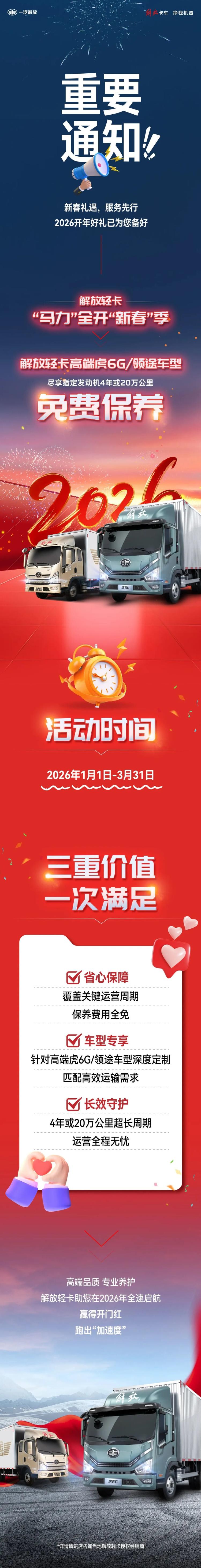 “马力”全开“新春”季,虎6G、领途免费保养啦!