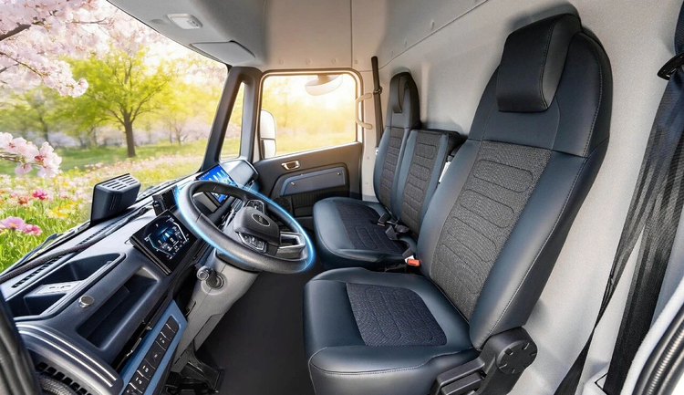 “开了才知道,电车是舒服。”老张说,油车有发动机,噪音少不了,而电车用电驱,驾驶室非常安静。更直观的对比是,坤鹏ET9采用行业最宽2170mm高顶平地板驾驶室,地板纯平,内高1850mm、内宽超1800mm,老张一米八的个子在车里不仅能站直,还能在车里活动,配上航空沙发气囊减震座椅,开一天车腰不酸。“以前回家累得不想说话,现在还有精力陪孩子看书。”