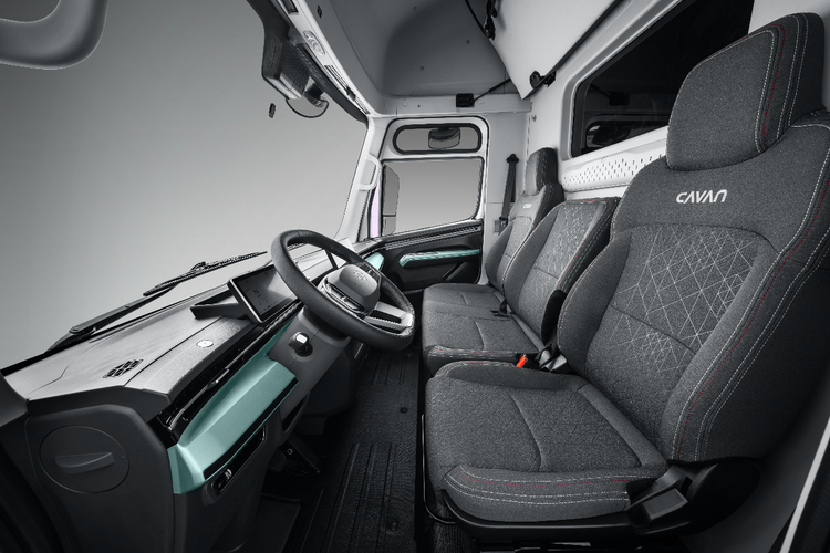 卡文乐途以人性化设计打造MPV级舒适座舱,低地板+行业最低二级踏步设计,大幅减轻驾驶员频繁上下车的疲劳,适配高频装卸场景。宽体驾驶室空间充裕,三幅式多功能方向盘集成蓝牙、定速巡航,操控便捷安全;液晶仪表与高清中控双屏联动,集成360°全景影像、车联网等功能,实时掌握车况路况。