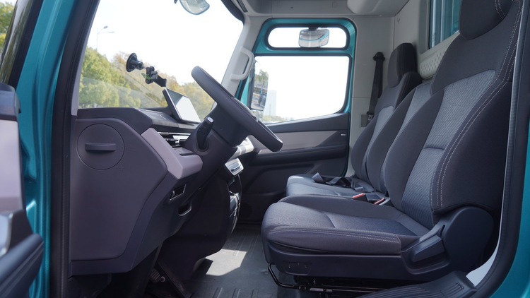 针对每日数十次上下车带来的肢体负担,行业首创470mm一级踏步,让上下车更轻盈省力,大幅缓解频繁上下车装卸货带来的身体劳损。2.12米超宽驾驶室配合全平地板,营造开阔的内部空间,即使在青岛批发市场等拥堵路段长时间停留,车内也不觉得压抑。驾驶室座椅采用乘用车坐姿倾角设计,方向盘倾角优化到49°,脚踝角87°,加速踏板倾角42.8°大幅降低腰、手、脚疲劳度。驾驶欧马可Z如同驾驶MPV,坐着不累,再加上电动助力转向与怀挡操控协同配合,不论城市复杂路况,还是长途驾驶都能轻松驾驭,舒适直达目的地。车内还有270升超大储物空间,保温箱、单据、工具、水杯各归其位,取用便捷。整体设计让山东城配司机开得顺手、坐得舒适、用得安心。