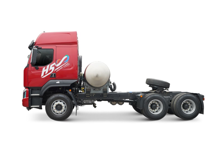 在合规性方面,由于子车整车高度仅为2.8米,装上母车后整体高度仍控制在4米以内,完全满足国家法规要求,无惧限高绕行,省时更省心。更值得一提的挂车兼容性,传统LNG车型因气罐后置占用空间,往往只能换装更短的挂车,不仅额外增加换挂费用,还会减少单趟装载量。乘龙H5超轻版2.0 LNG子车创新采用滑动鞍座设计,可兼容燃油车型常用的9.5米挂车,完美实现“油气同挂”。
