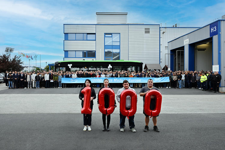 1场直播比亚迪匈牙利工厂第1000辆电动大巴下线