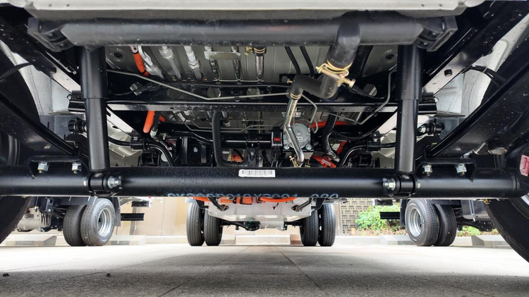 底盘采用高强钢直通大梁,刚体是常用510L钢材的1.5倍,并且使用9根横梁加固,更加扎实耐用;前悬增加横向稳定杆,同时采用宽体轮距板托距的设计,赋予星塔“稳如泰山”的能力,无论空载、重载,转弯时也能不飘不晃。