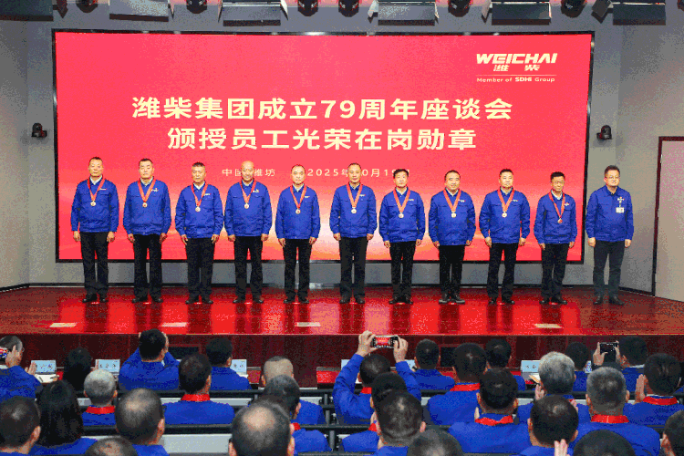 10月19日,潍柴集团举行成立79周年座谈会,颁授员工光荣在岗勋章,为555位员工献上专属的荣光与礼赞。山东重工集团党委委员、副总经理,潍柴集团党委书记、董事长、总经理马常海与管理团队一同出席。