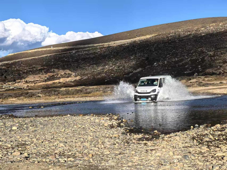 当车辆驶过塔公草原的高原土路,全时四驱系统与全地形轮胎稳抓地面,氮气减震器过滤颠簸,车身始终保持稳健姿态;加装涉水喉的车辆,穿越涉水浅滩毫无波澜,轻松通过。