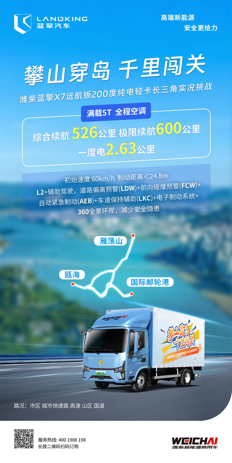 攀山穿岛,千里闯关 潍柴蓝擎X7远航版纯电轻卡长三角实况挑战圆满收官!