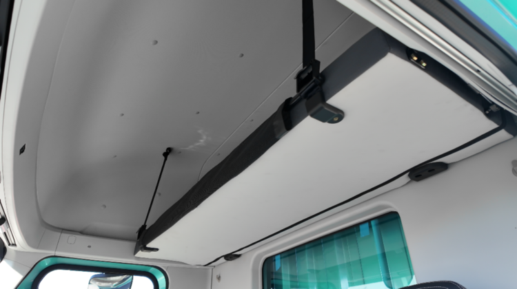 首先,这款车采用的是重卡级的“盾式车身”结构,代表着更高的安全性,看起来有种科幻的感觉,而且极具辨识度,风阻系数最低可以达到0.3,为能耗的降低打下基础。它的驾驶室空间也进行了许多创新、大胆的设计,低顶内高1.8m,高顶2.26米(带卧铺),如果卡友们有在车里过夜的需求,这一设计简直不要太方便。