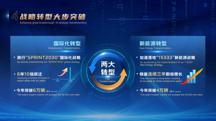 重点围绕整车差异化、自主核心总成、智能化体验三大重点,加快核心技术攻关,通过AI有效有序赋能,进一步优化技术创造力,将智能化打造销量提升的核心增长点。倾斜更多创新资源对准产品需求,加快行业先进技术转化上车。完善技术创新生态,优化与行业巨头、科研院所的创新与共享机制,打造技术创新生态平台,孵化更多技术成果。打造规模更大、结构更优、能力更强的科技人才队伍,全面激活创新赋能转型的澎湃动能!