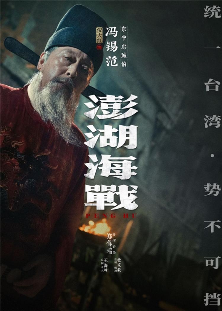 海报中,王学圻老师扮演的福建水师提督施琅“怀私不计,止戈两岸”的“皓首老将”形象跃然而出;青年演员易烊千玺饰演27至29岁的康熙皇帝,眉宇间凝聚着“英年雄主,运筹千里,一统山河”的决心;青年演员侯雯元扮演的福建水师外委把总施世骅,战场上与父亲和水兵兄弟“肝胆相照”,但经历澎湖“战火洗恨”后却“释刃归帆”;青年演员罗一舟扮演的是投军福建水师担当碇手的“莆田渔户”许天曹,心中最大愿念是与家人“同舟起航,祈求团圆”;韩童生老师扮演的是重要的“平台辅臣”福建总督姚启圣,澎湖海战后“梦圆海靖边宁”;演员胡明饰演了福建水师左营游击刘克宏,此人在电影中则是“暗怀异志,结党怠战,惑乱军心”的人物;马京京塑造的是福建水师总兵朱天贵,此人在历史上是著名的“海战骁将”,澎湖海战中最终“怀忠抱憾,血染沙场”;演员答有为扮演的福建水师后营游击曾成,在澎湖海战中“赤胆忠心,临危不惧,英魂镇海”。