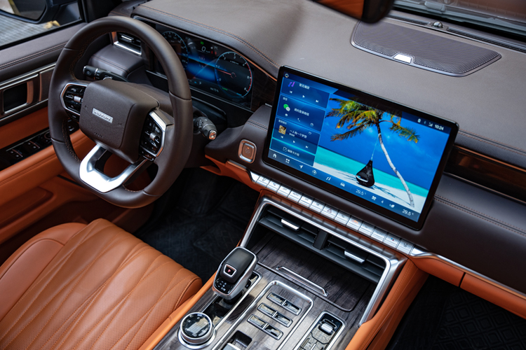 车内大面积采用软性材质包覆,搭配金属拉丝工艺与沉稳的棕黑配色,营造出行政级的座舱氛围。人体工学座椅堪称一大亮点,前排座椅腰腿部支撑扎实,可应对越野颠簸,同时支持10向电动调节、三档记忆及通风加热功能,舒适性拉满。后排空间同样用心,可调至27°“黄金仰角”的靠背、后排出风口与电源接口,让每一次长途旅行都成为一种享受。