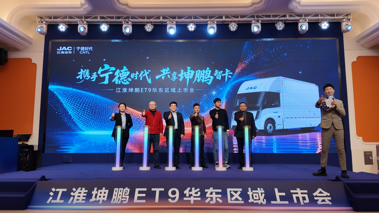 12月24日,江淮1卡坤鹏ET9在南京正式举行华东区域上市仪式。活动现场不仅安排了用户、媒体的试驾活动,更有大客户现场签约订购100台,可谓是上市即大卖。
