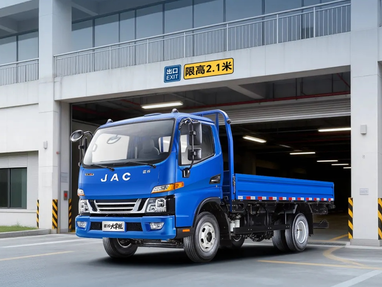 通过优化底盘与上装设计,骏铃大掌柜标准版整车高度仅2220mm,货台高度仅940mm;地库版车型更将整车高度控制在2095mm以内,货台最低仅890mm,完美匹配标准托盘高度,轻松进出商超地库,成为社区团购、高端社区配送的“隐形利器”。