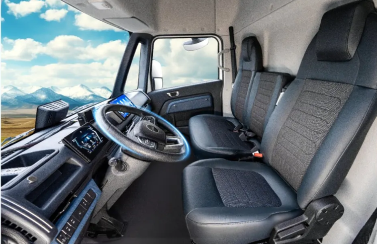 卡友以车为伴,驾驶室就是移动的“家”。坤鹏ET9在驾驶室上真是下了血本,行业最宽 2170mm 高顶纯平地板驾驶室,内高达到1米85。一米七八的个子,在里面能完全站直,中午躺下睡个觉再也不憋屈了。座椅是航空沙发气囊减震座椅,支持上下、前后调节,跑长途对腰友好多了。