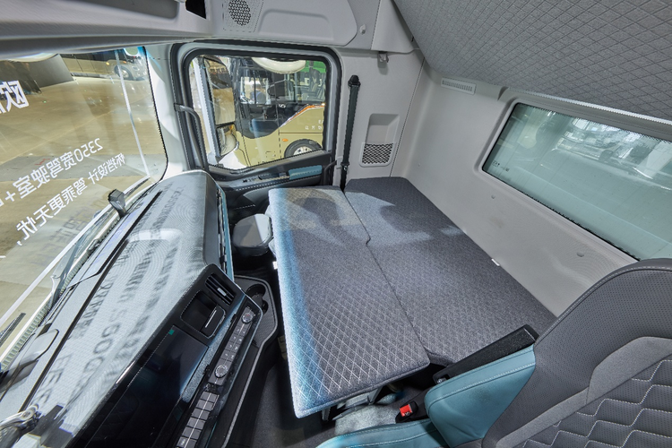 智能升级,安全舒适兼备。在智能化配置上,欧航智蓝EH配备L2级组合辅助驾驶系统,不仅降低长途驾驶疲劳感,还大幅提升驾驶安全性。在舒适智能化方面,欧航智蓝EH纯电重卡延续了欧航H重卡的优势,驾驶空间大,平地板,直立高度达1.93米,卧铺可拓宽至1.2米,气囊减震座椅还具备通风加热功能,驾乘更舒适。车辆还配装了12.3寸的智能语音控制大屏,内置腾讯生态与华为HiCar,在兼具丰富的娱乐生态与便捷的车机互联操作体验的同时,还提供全车电子管家,实时掌握车辆真实状况,用车更安心。
