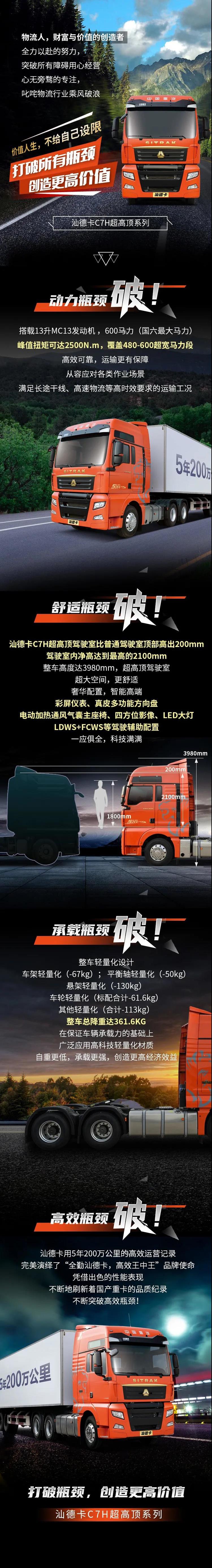 最大600马力!整车降重361.6kg,汕德卡C7H超高顶系列