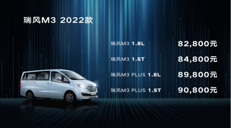随着“80后”、“90后”逐渐成为MPV市场的主要消费力量,新国货品牌在审美、技术与人机交互上的体验被不断更新。作为MPV市场先行者的瑞风汽车,精准洞察到市场与用户的变化,在本届成都车展正式推出了符合MPV新国货标准的瑞风M3 2022款,搭载1.8L和1.5T两种动力排量,共计4款车型,新车价格是8.28万元-9.08万元。作为十万级商用MPV网联先行者,瑞风M3 2022款在保持一贯的空间优势以外,围绕智能网联、造型设计、安全保护三大维度进行全面升级,展现了商用MPV新国货的全新姿态。