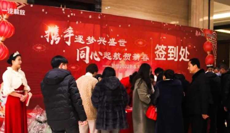 满载收获辞旧岁,豪情万丈庆新年。2022年1月16日,以“携手逐梦兴盛世 同心起航贺新春”为主题的一汽解放蚌埠地区2022新春大拜年活动在“湖上升明月”古民居博览园隆重召开。在全体员工的精心布置下,整个会场华灯璀璨,彩旗飘扬,可谓年味儿十足,喜气洋洋!