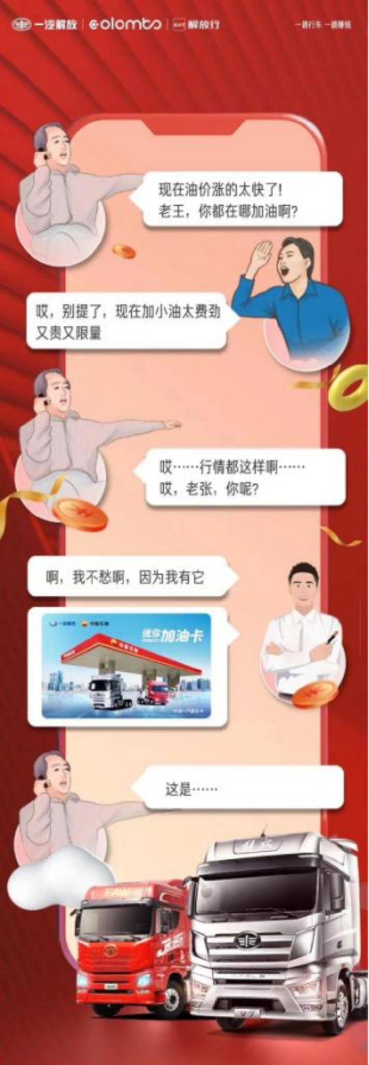 作为家喻户晓的解放“生态四剑客”之一,“优你加油卡”是一汽解放与中国石油联手为解放卡友打造的专享加油福利。只要卡友购车所在地开通了这一业务,就可以在指定解放经销商处免费开卡。该卡在全国多地享加油直降优惠,小油价格、大油品质,助力卡友节省运营成本。