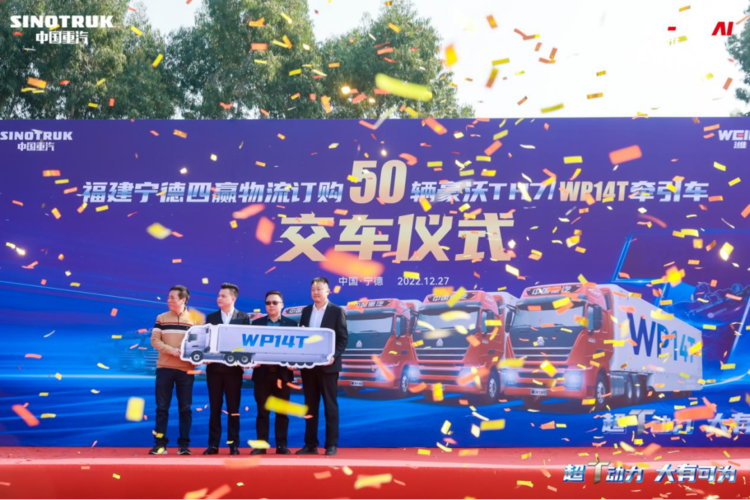 2022年12月27日,50辆豪沃TH7/WP14T/610马力牵引车交车仪式在福建宁德隆重举行。各方代表与媒体记者出席仪式,共同见证交车荣耀时刻。开启新篇章,驶向新征程!