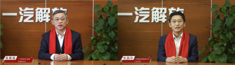 在直播的最后,中国一汽总经理助理、一汽解放董事长、党委书记胡汉杰,一汽解放总经理、党委副书记吴碧磊,一汽解放党委副书记、工会主席张国华,代表所有解放人为广大卡友们送上了诚挚的祝福。希望在解放拜年九重礼的鼓舞下,在解放真诚的祝福与陪伴下,广大用户能够以饱满的热情和十足的干劲,踏上2023的新征程,用勇往直前的拼劲和脚踏实地的耕耘,去创造美好的未来!