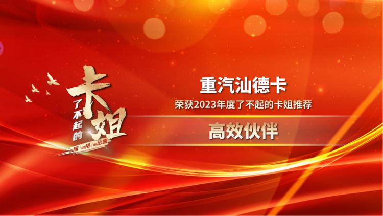 2023年3月8日,重汽汕德卡在洋葱商用车主办的第二季“了不起的卡姐”活动中成功获得2023年度“卡姐推荐高效伙伴”大奖。
