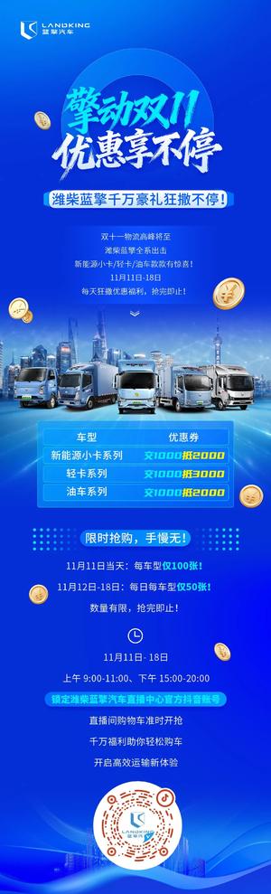 擎动双十一!潍柴蓝擎千万豪礼狂撒不停!